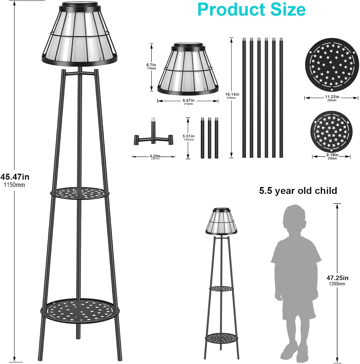 2 Pack Solar Lights Outdoor with Plant Stands, Solar Floor Lamp Street Lights Metal Tripod Patio Lights for Garden Yard Pathway Driveway Front/Back Porch Decoration-D- 2Pack Black - Double shelf